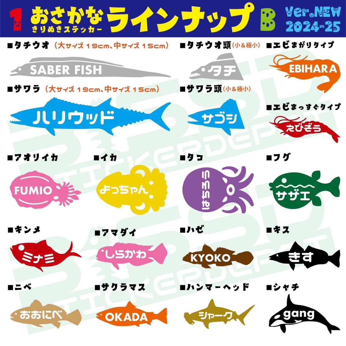 日章柄タイプドカット用おさかな型名前ステッカー1枚!魚種50種類!送料込! 收藏