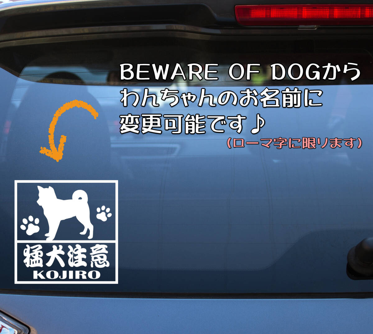 オリジナルデザインですので人と被らない商品をお探しの方にお勧めです! (転写シート・貼り付け簡易説明書付) ※『BEWARE OF DOG』の部分をわんちゃんのお名前に変更も可能です。(ローマ字に限る) サイズ(ステッカー実寸) 縦:9cm 横:9cm 色:ホワイト ※色はブラック・レッド・イエロー・オレンジ・ピンク・シクラメン・ブルー・ミント・パープル・ダークグリーン・ブロンズ・シルバー・ゴールド・艶消しシルバー・艶消しゴールド・艶消しブラック・艶消しホワイトにも変更可能です。 ※艶消しシルバーと艶消しゴールドは+100円となりますので購入前にご連絡ください。購入後の変更はできませんのでご注意ください。 耐候年数は4年~5年の屋外・屋内共に使用に適したステッカー(防水)を使用し、ガラスや滑らかな表面などに貼るのに適しています。 7cm~9cm(通常サイズ)1枚:430円 10cm~12cm(小サイズ)1枚:550円 13cm~14cm(中サイズ)1枚:600円 15cm~18cm(大サイズ)1枚:800円 上記サイズにも変更可能ですのでご希望の方はコメントでお知らせください。 | ||||