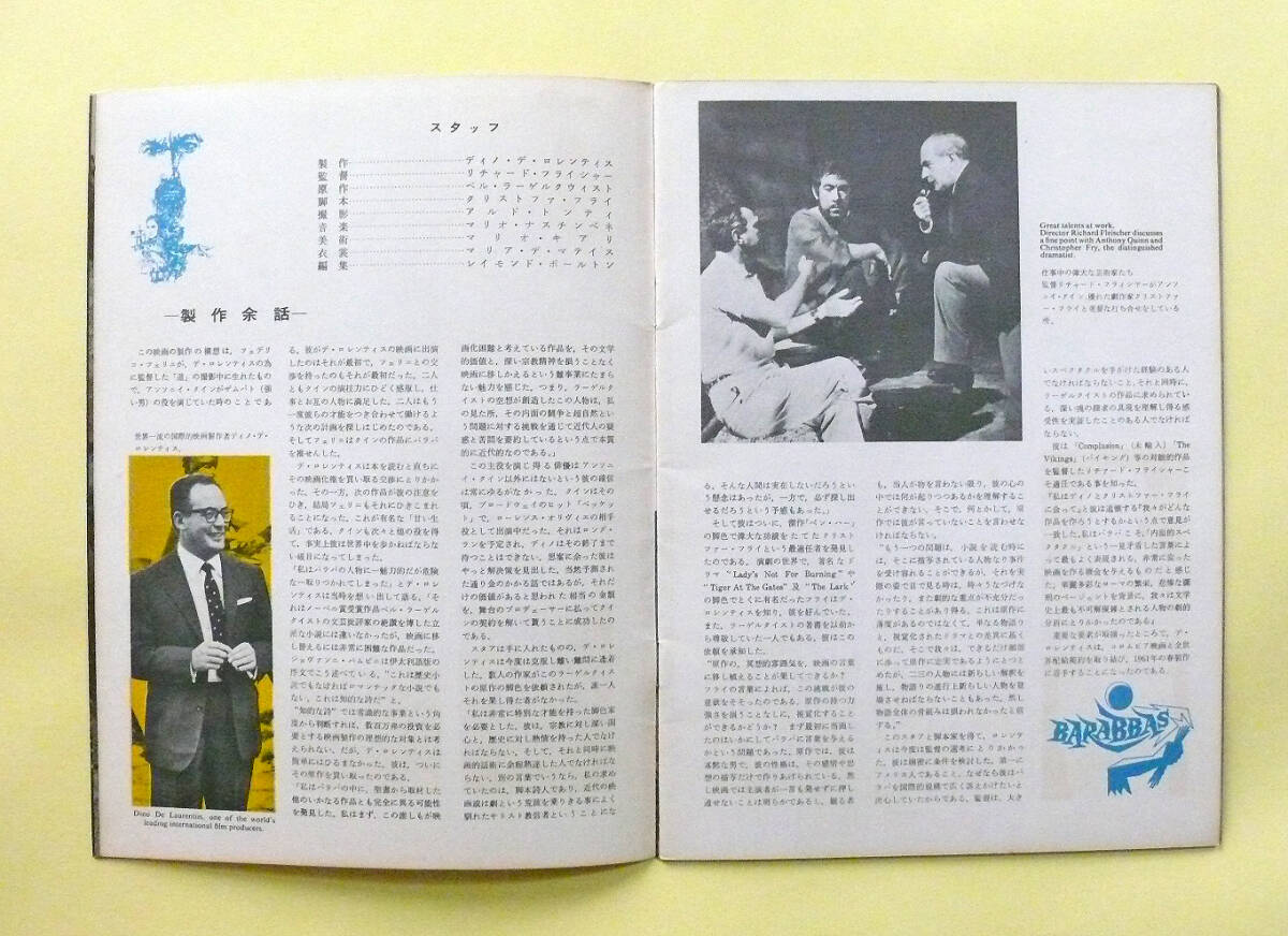 B5パンフ/アンソニー・クィン「バラバ/Barabbas」リチャード・フライシャー監督