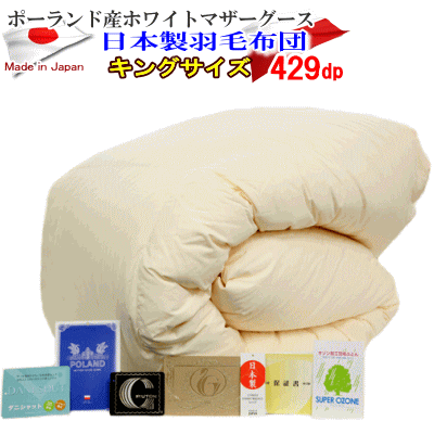羽毛布団 キング 日本製 羽毛 ポーランド産ホワイトマザーグースダウン ダウンパワー 429dp ロイヤルゴールドラベル 收藏
