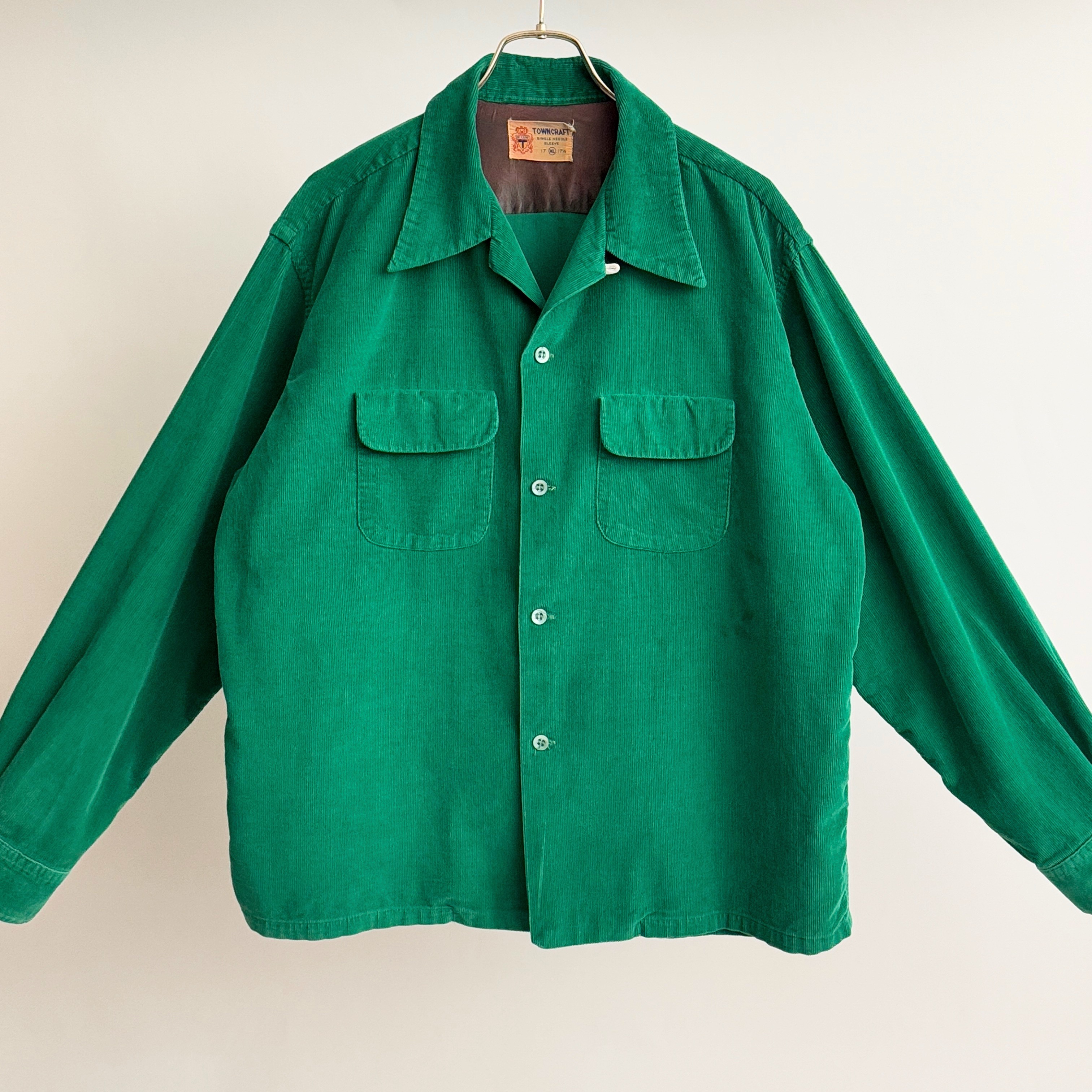 希少《 Big Size XLarge 17-17.5 / TOWNCRAFT 》50s 美品【 タウンクラフト デラックス グリーン コーデュロイ シャツ ビンテージ 】 收藏