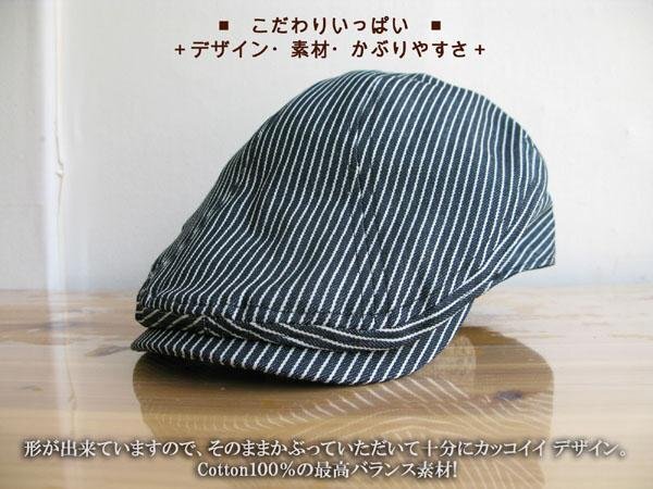 メンズ 帽子 完売再入荷 キャンパスハンチング ヒッコリー紺 P280-11 帽子 定番人気 サイズメンズM 59cm オールシーズン 綿 コットン 收藏