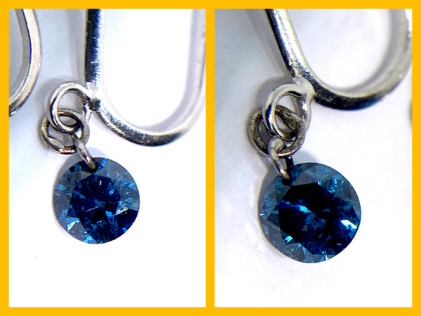 【即決】 K18WG ブルーダイヤモンド イヤリング D:0.17ct 計0.34ct ダンシングダイヤモンド 揺れるダイヤ ホワイトゴールド 0.8g 收藏