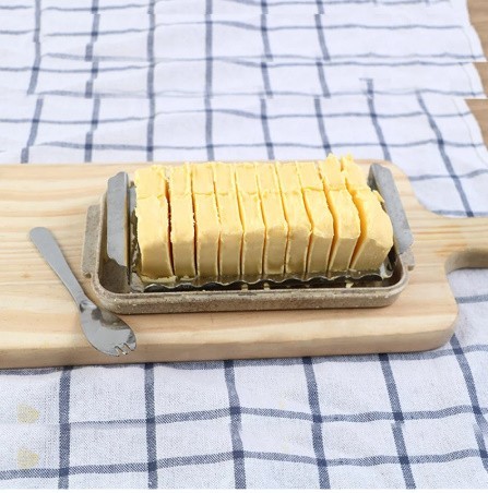 | 【商品説明】 一度に20個にカット上からひと押しで約10gに一気にカット! 200gのブロックのバターを20等分に切り分けられます。 お菓子作りやパン作りの分量の目安に! あらかじめカットして使いすぎを防止。カロリーコントロールにもなります。 カットしてそのまま保存バターカッターはつけたまま保存。 先割れタイプのバターナイフ付切り分けたバターを突き刺して取り出せます。 注意事項:バターが硬いとカッターが変形する恐れがあるので、常温に戻したバターをカットして下さい。 | ||