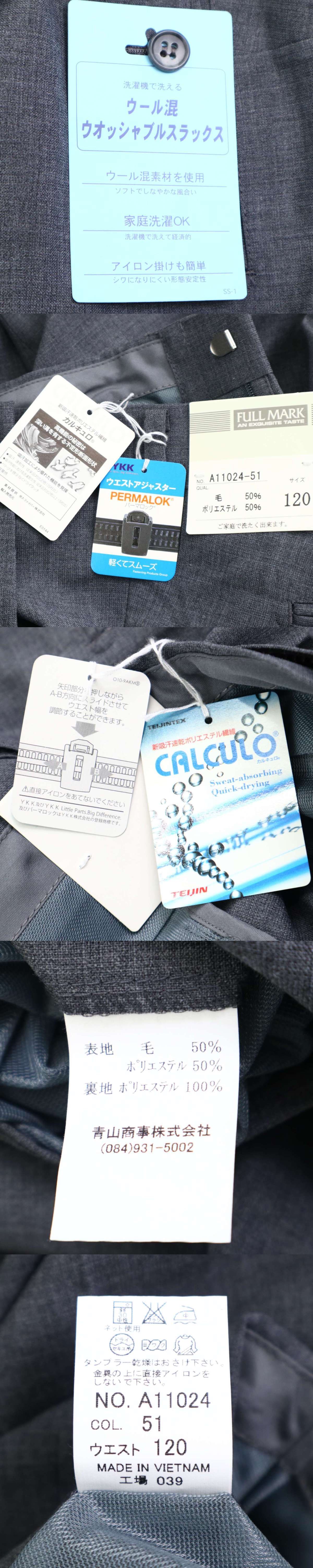 【新品 未使用】 FULL MARK フルマーク ウール混 ウオッシャブル スラックス パンツ Sz.120 メンズ 灰 大きいサイズ 特大 C5B00966_3#P 收藏