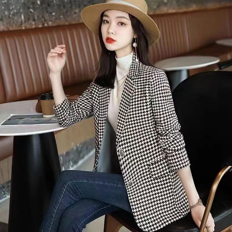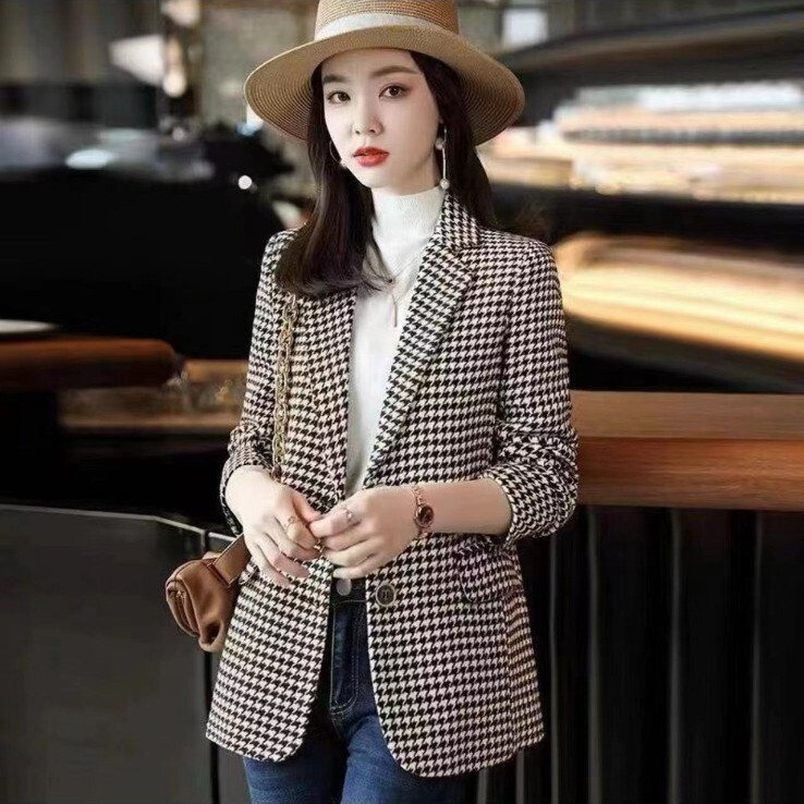 テーラードジャケット レディース スーツ 春秋 千鳥柄 ブレザー コート トップス 長袖 アウター 上品 カジュアル オフィス 通勤 XL 收藏