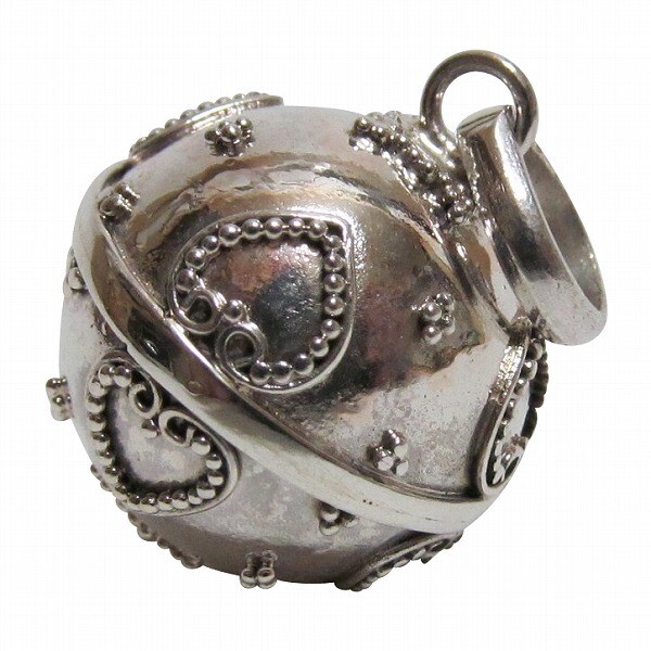 ガムランボール 1.5cm ハート模様 シルバーアクセサリー ネックレストップ ドリームボール 15mm【メール便OK】230131 收藏