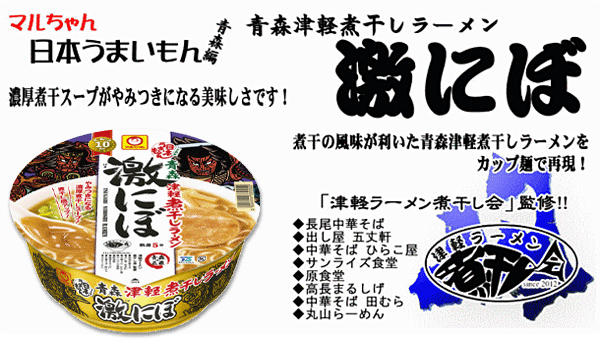 | 名称 | カップ入り即席麺 マルちゃん 日本うまいもん 青森津軽煮干しラーメン 激にぼ |