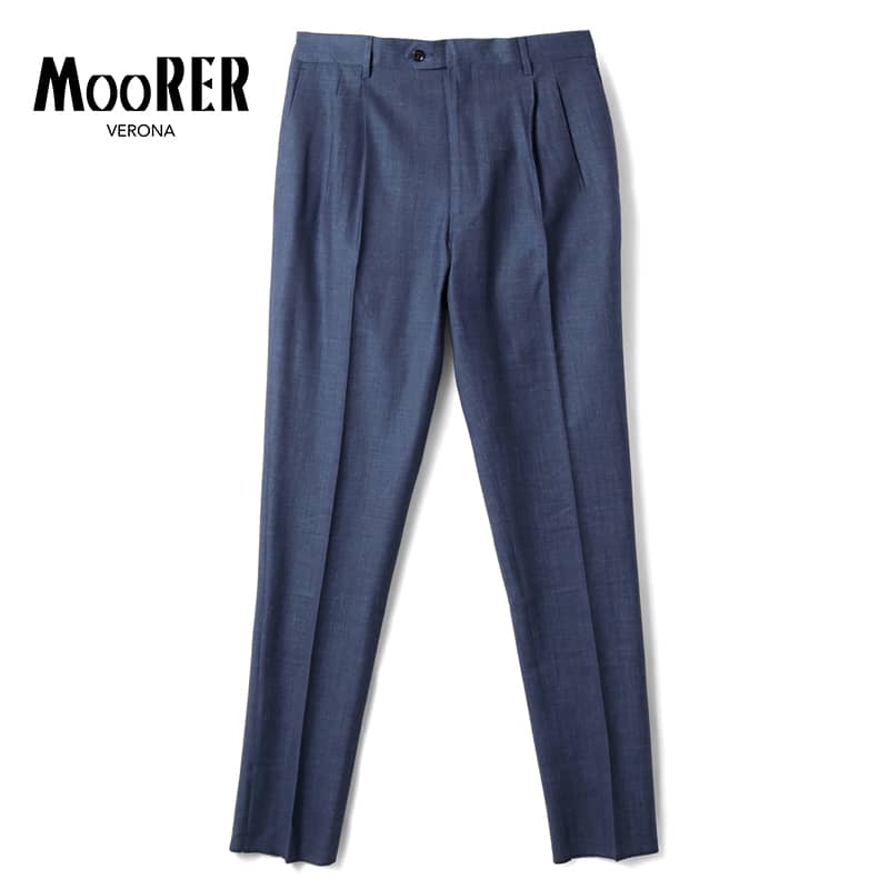 MooRER(ムーレー) / デニム調ウールシルクリネンストレッチツイル2プリーツテーパードパンツ(JARVIS-W3) [mor2460791-48] 收藏