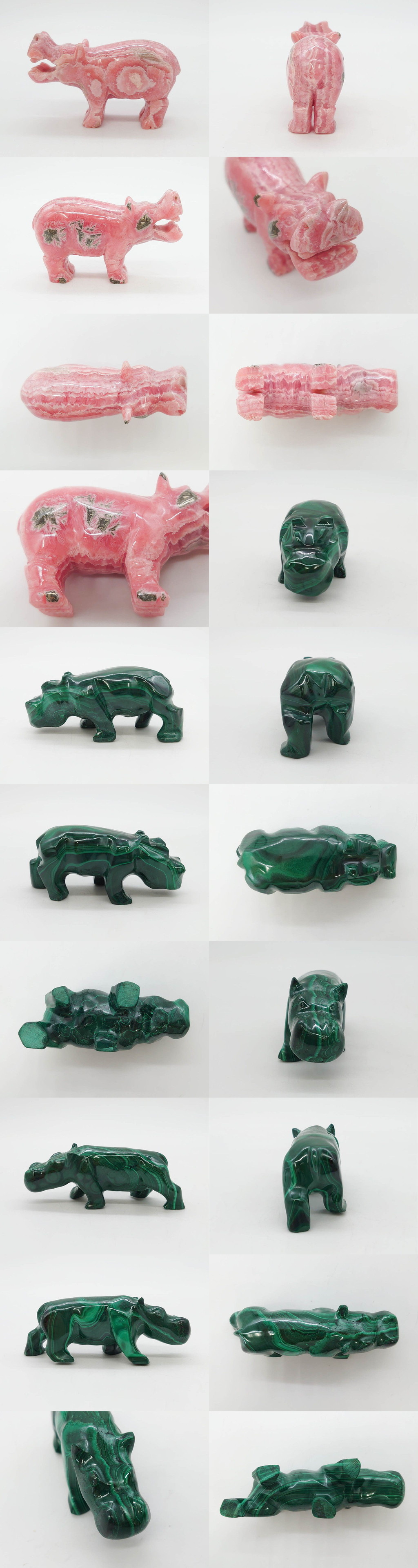 R-081472 中国? マカライト 瑪瑙? カバ お部屋のアクセントになる置物6点セット(彫刻、動物、アニマル、オブジェ、ディスプレイ) 收藏