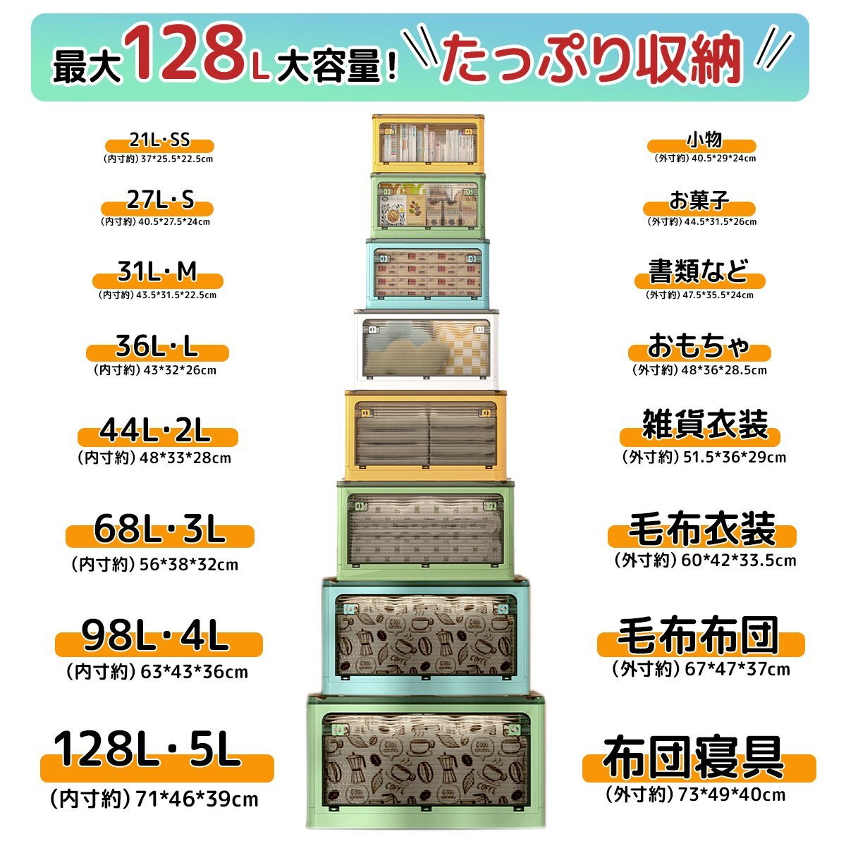 【送料無料】3個set 折りたたみ式 収納ボックス 44L 51*36*29cm 収納ケース 蓋付き キャスター付き 透明 衣類収納 2L■5面 ★5色選択 收藏