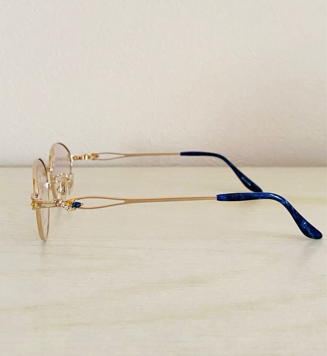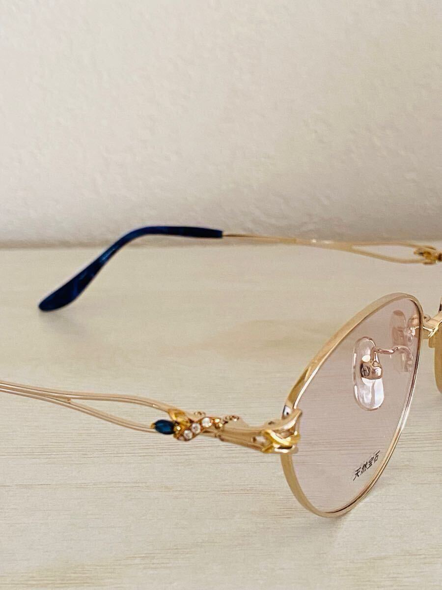新品未使用 お買い得品です 高級メガネフレーム シャルマン K18 金製飾 ゴールド ミキモト装身具製 天然サファイア 天然宝石ダイヤモンド 收藏