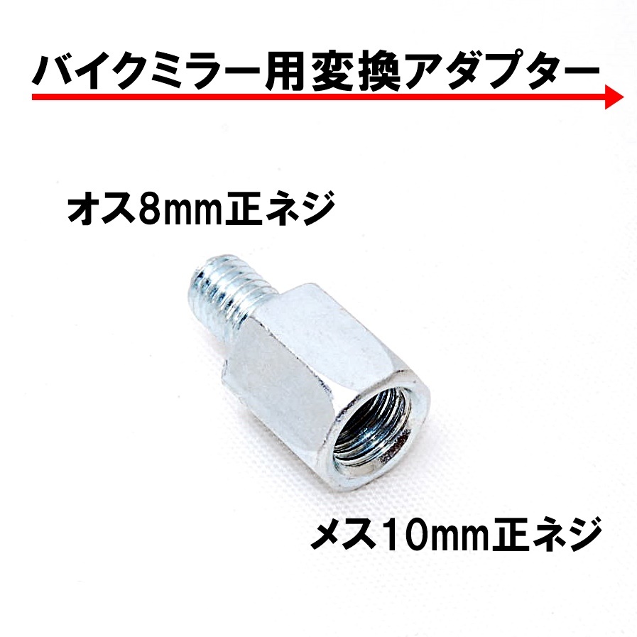 送料無料 バイク用ミラー 変換アダプター 車体8mm (正ネジ) ⇒ミラー10mm (正ネジ) 1個 シルバー 銀 ミラー変換アダプター ボルト ナット 收藏