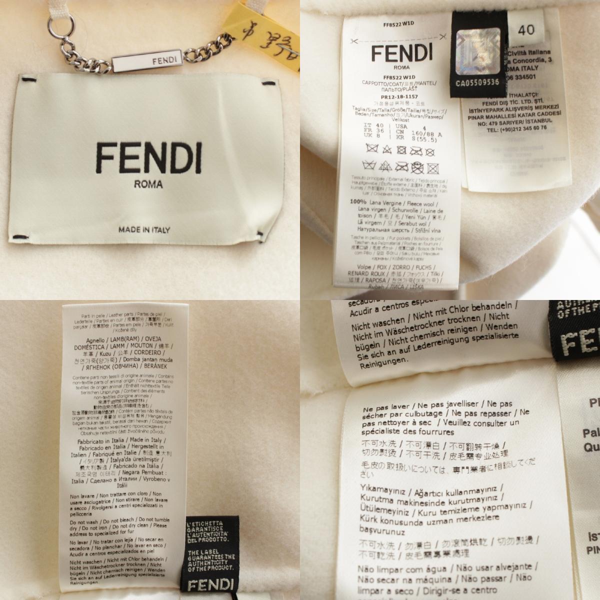 フェンディ ウール フォックスファー ノーカラー コート FF8522 W1D ホワイト ブラック 40【中古】 收藏