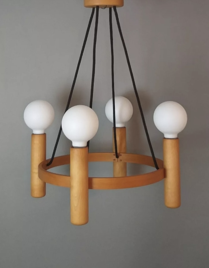 ★超激レア美品★ Domus 4灯シャンデリア ブナ材 ドムズ 照明 ライト シャンデリア 70年代 フルオリジナル 極美品 ペンダント バウハウス 收藏