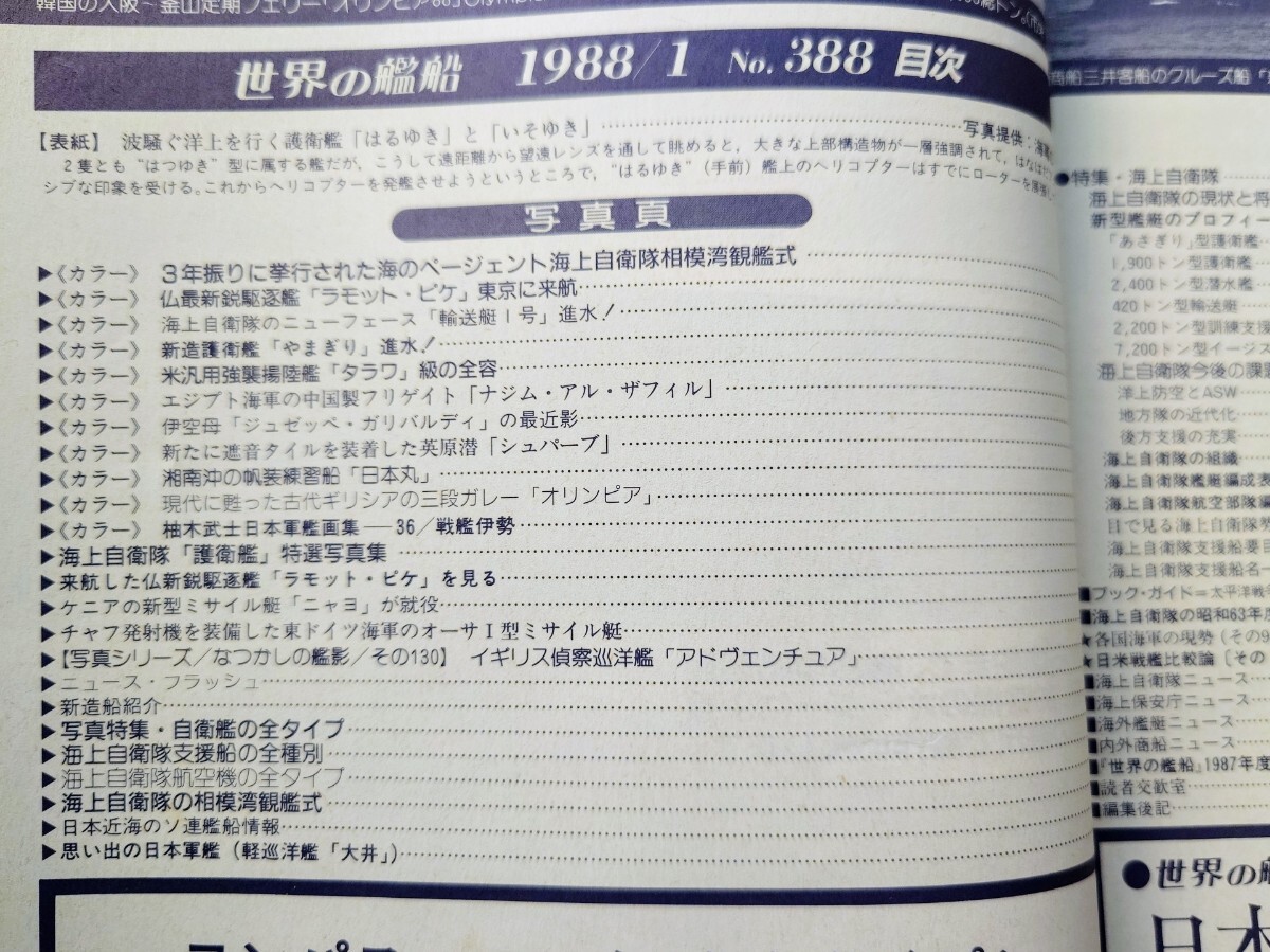 世界の艦船 1988年1月 NO.388 特集・海上自衛隊特大号 相模湾観艦式 昭和63年度業務計画案 東京に来航した仏新鋭駆逐艦ラモット・ビケ 收藏