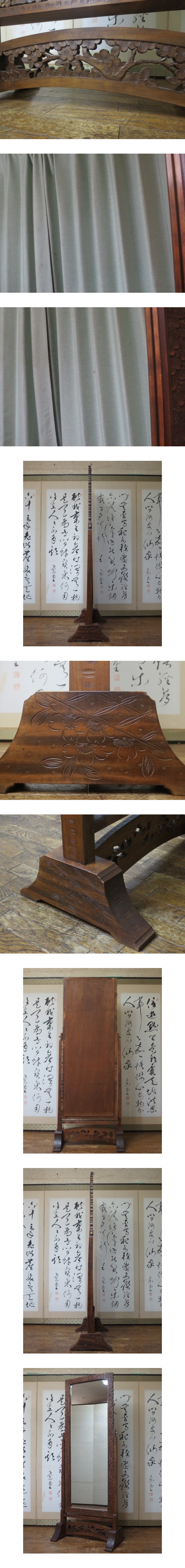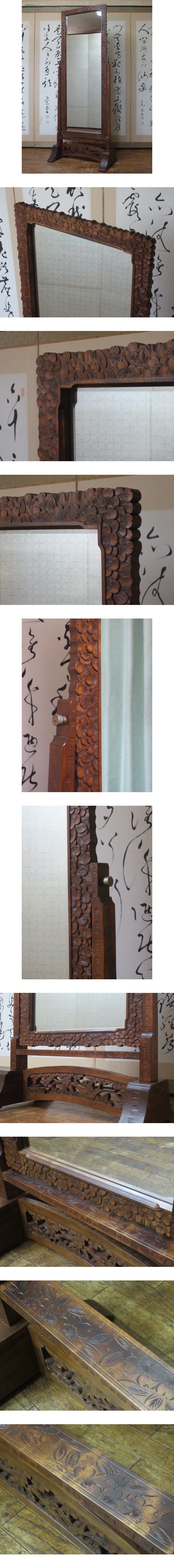 逸品 伝統工芸 軽井沢彫り 桜彫刻 姿見 35万円/ミラー/鏡台/鏡/ドレッサー/箪笥/和家具/民芸/骨董/古美術/松本民芸/柳宗悦/アンティーク 收藏