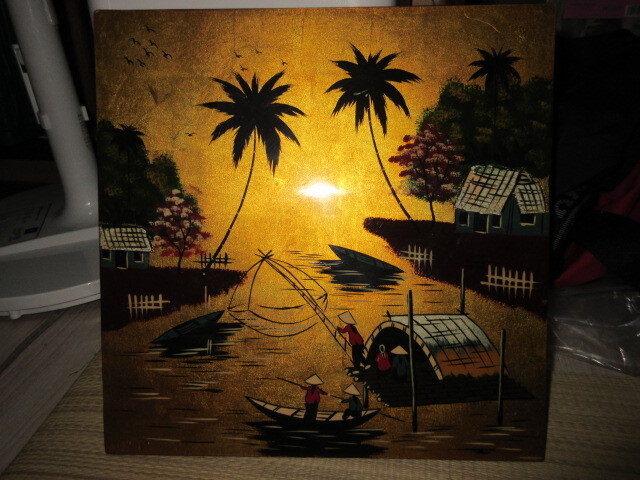 R070807 断捨離 処分「祖父 昭和当時物 東アジア旅行 木製風景画 インテリア 壁絵」保管品 USED