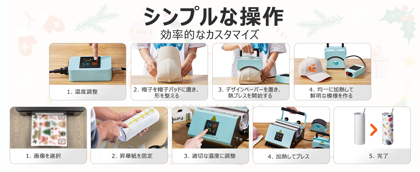 移動性を考慮して設計されているため、いつでもどこでも創作を始めることができます。帽子キャップヒートプレスは操作が簡単で、さまざまな設定に適応できるため、多様なニーズに応え、創造性を無限に保ちます。