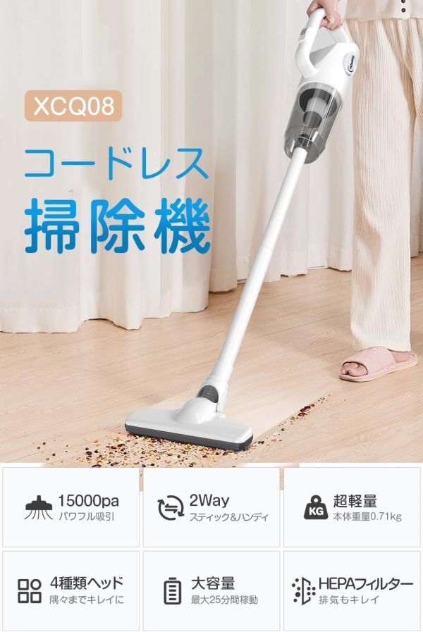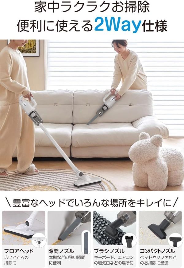 15Kpa超強力吸引 超軽量 スティッククリーナー サイクロン 伸縮型 ハンディクリーナー 充電式 2WAY仕様 HEPA多重濾過 低騒音 收藏