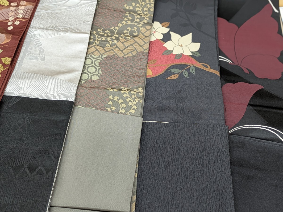 着物帯 帯 9枚まとめ売り ポリエステル製 和装小物 和柄 レトロ柄 和服 花柄 鞠 蝶々 両面帯?あり リバーシブル? リメイク 材料 素材 生地 收藏