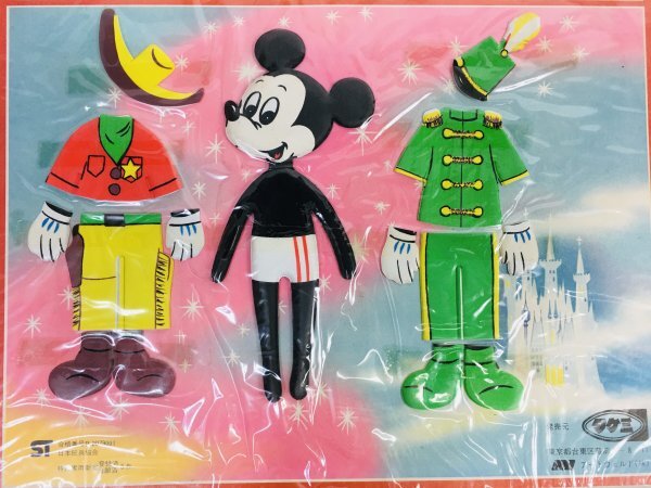 ☆未開封 ディズニーパレード ポーズ人形 ミッキー きせかえ 赤/緑 NO.0500 タケミ製 昭和レトロ 当時物 Disney 着せ替え 玩具 おもちゃ 收藏