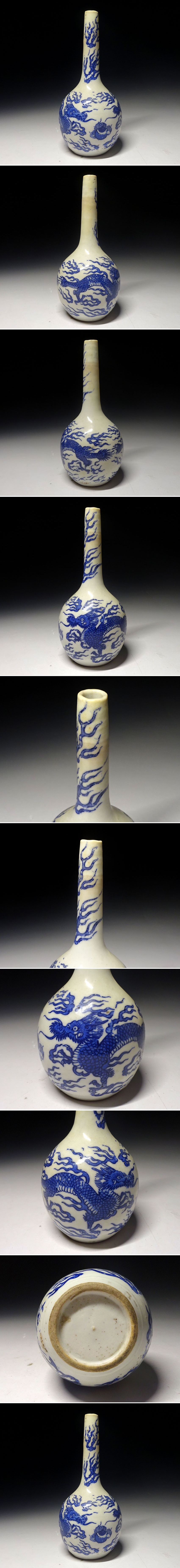 緑屋c■ 中国古玩 染付 鶴首 花瓶 壺 唐物 時代物 i9/7-7090/3-2#60 收藏