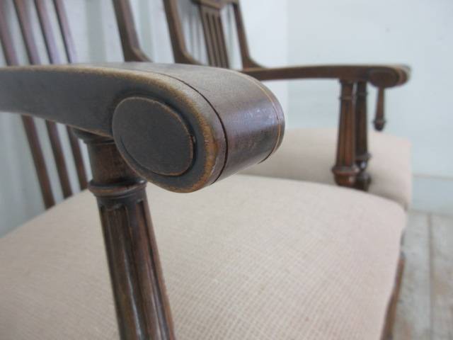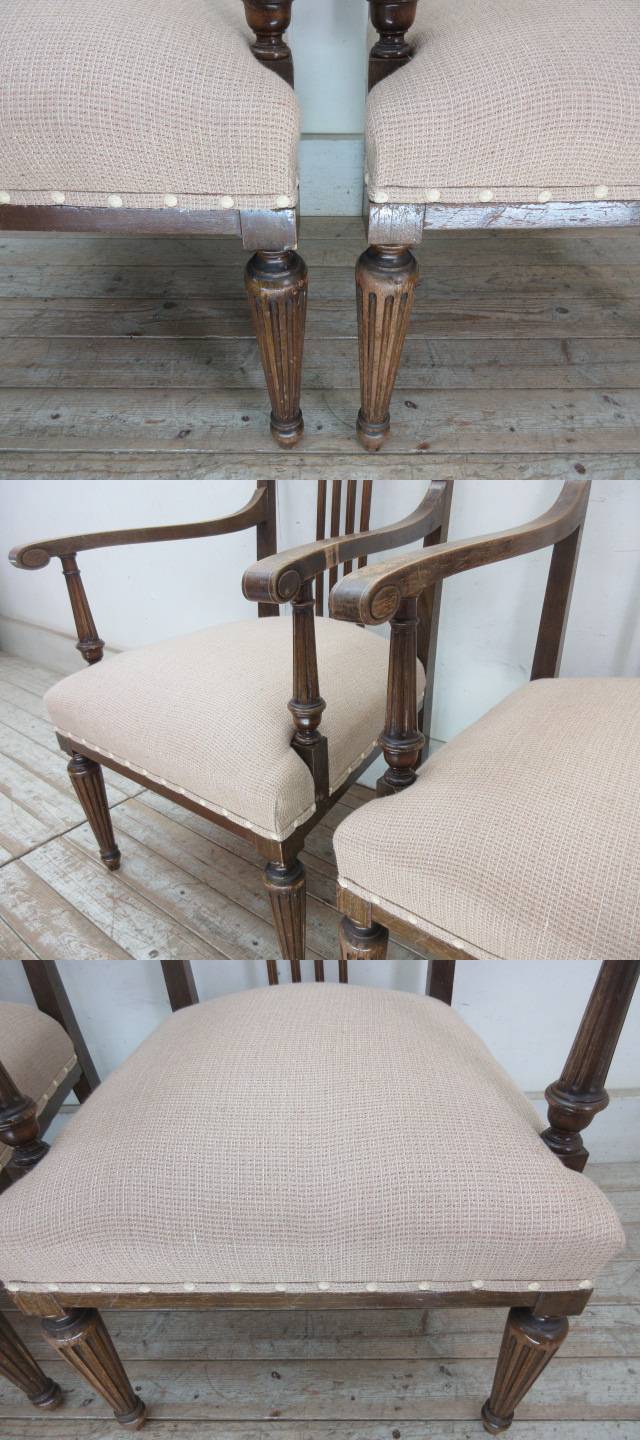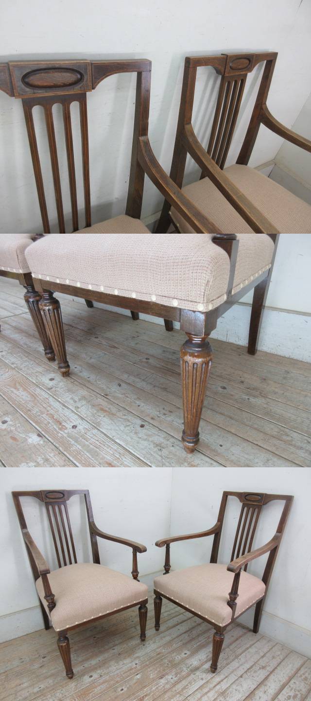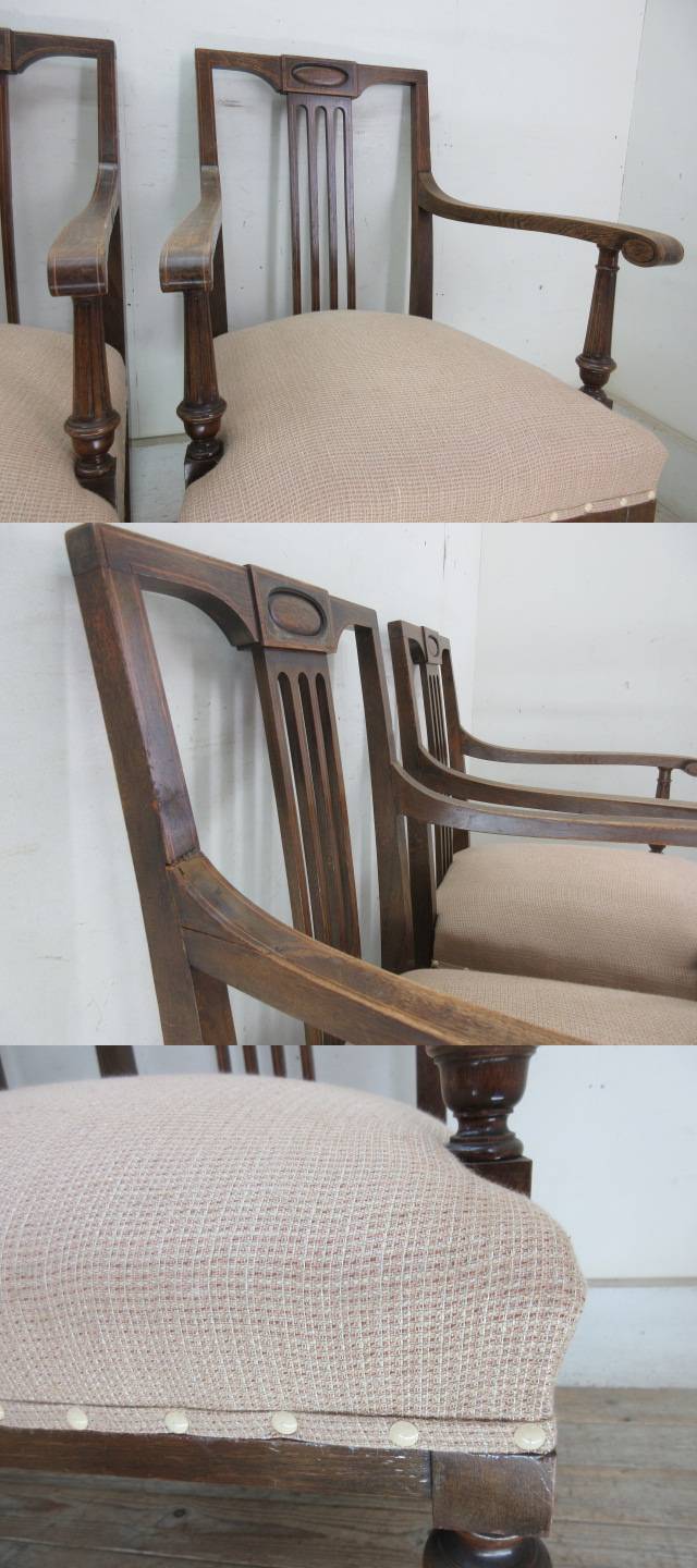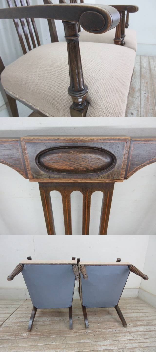 張替え済!肘掛け付き古い木製椅子2脚セットF445 アンティーク家具ダイニングチェア店舗什器カフェ什器無垢材古家具 收藏