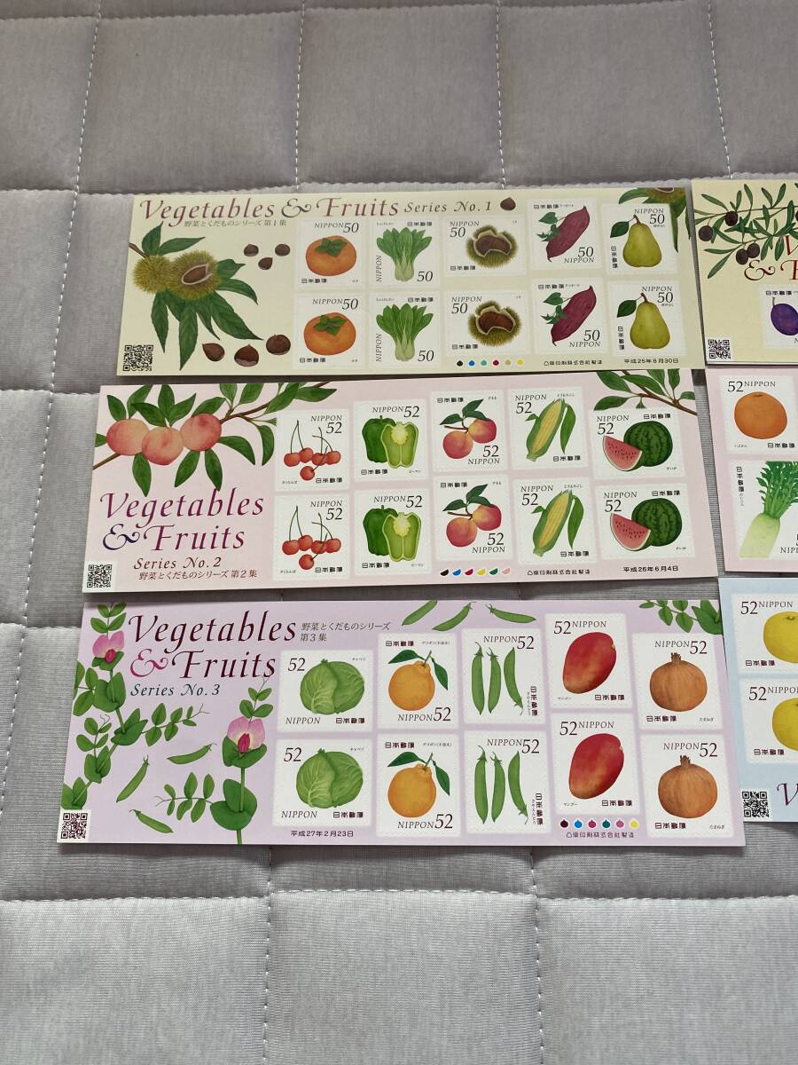 野菜と果物シリーズ第1集〜6集 ベジタブル&フルーツ 切手 52円5枚と50円1枚 3100円分 シール切手 收藏