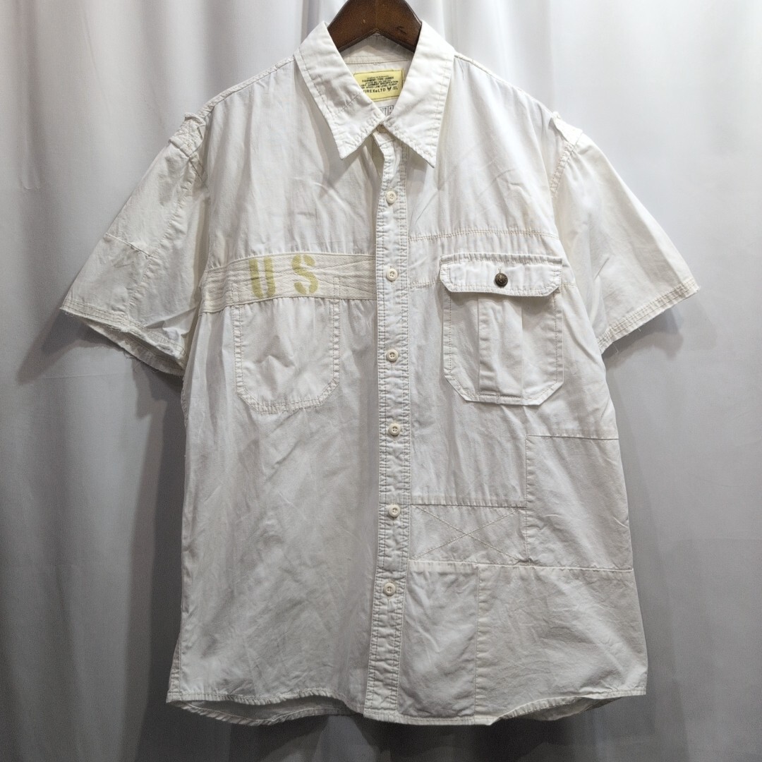 【size:XL】AVIREX アヴィレックス 半袖 ミリタリーシャツ メンズ ワークシャツ コットン 白 US ARMY/アルファ/ロスコ/ymclky 收藏