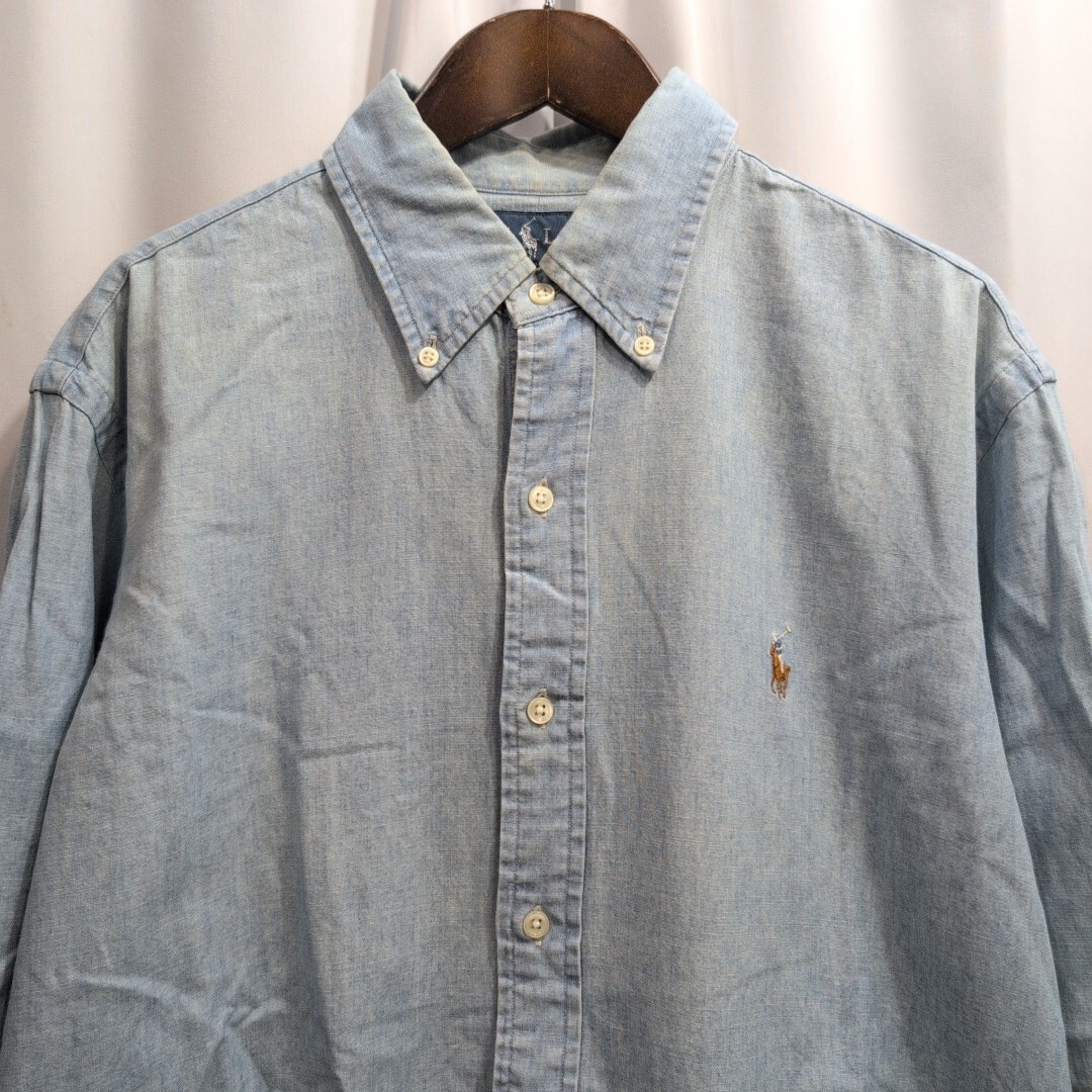 POLO RALPH LAUREN ポロ ラルフローレン 長袖 シャンブレーシャツ M メンズ 長袖シャツ デニムシャツ ロゴ刺繍 ボタンダウン ワークシャツ 收藏