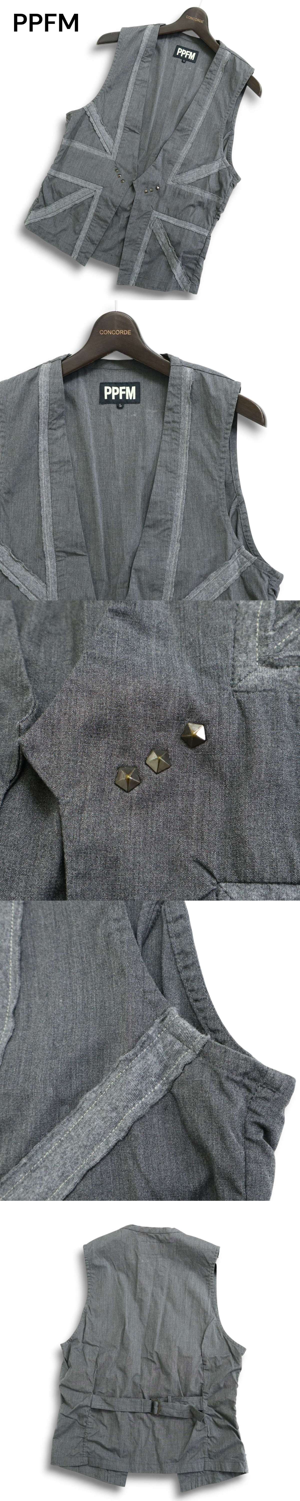 PPFM ペイトンプレイス 通年 ユニオンジャック風★ スタッズ ベスト ジレ Sz.L メンズ 灰 グレー 收藏