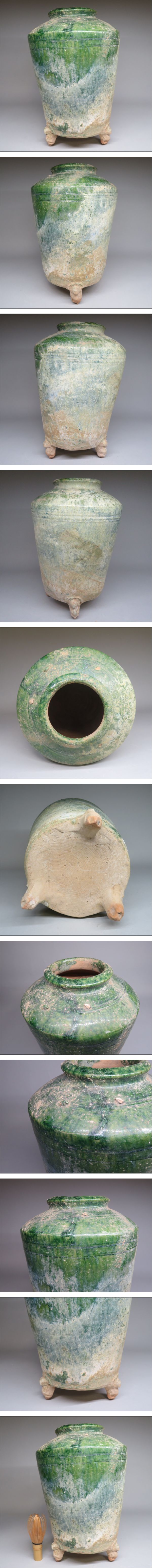 「都内コレクター所蔵品」3-1 漢時代 緑釉三足穀倉壺 中国美術 東漢時代 ◆加彩 花瓶 発掘 彩文土器 彩陶壺 | ||