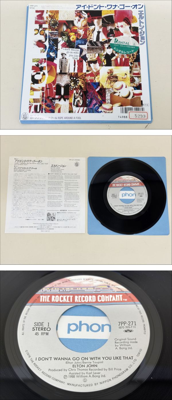 レコード EP盤 7インチ エルトン・ジョン アイ・ドント・ワナ・ゴー・オン / ロープ・アラウンド・フール 收藏