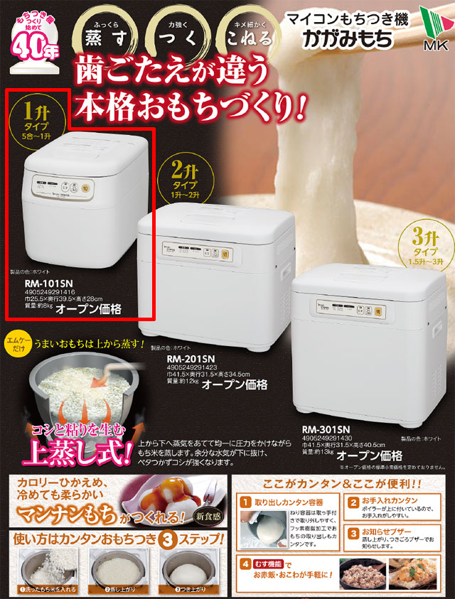 【未使用品】エムケー精工 マイコンもちつき機 かがみもち RM-101SN 1升タイプ 蒸す・搗く・捏ねる一台三役 上蒸し式 【長野発】 收藏