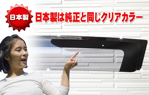 弊社のサイドバイザーは、ネットショッピング専用の商品ではなく、 全国の自動車販売店様へ納入するために開発された商品です。 毎月3,000セット以上販売実績があり、各販売店様からも高い評価をいただいております。 また弊社よりも安価なサイドバイザーについて、最大の違いは取付の際の両面テープと専用金具です。 以前、海外製の両面テープを使用していましたが、 トラブルが多く弊社の商品は、日本製に変更いたしました。 安価なサイドバイザーには専用金具が付いていない物もあり、装着後の 耐久性に不安が残るため、弊社では安全性に最大の配慮をしています。 |