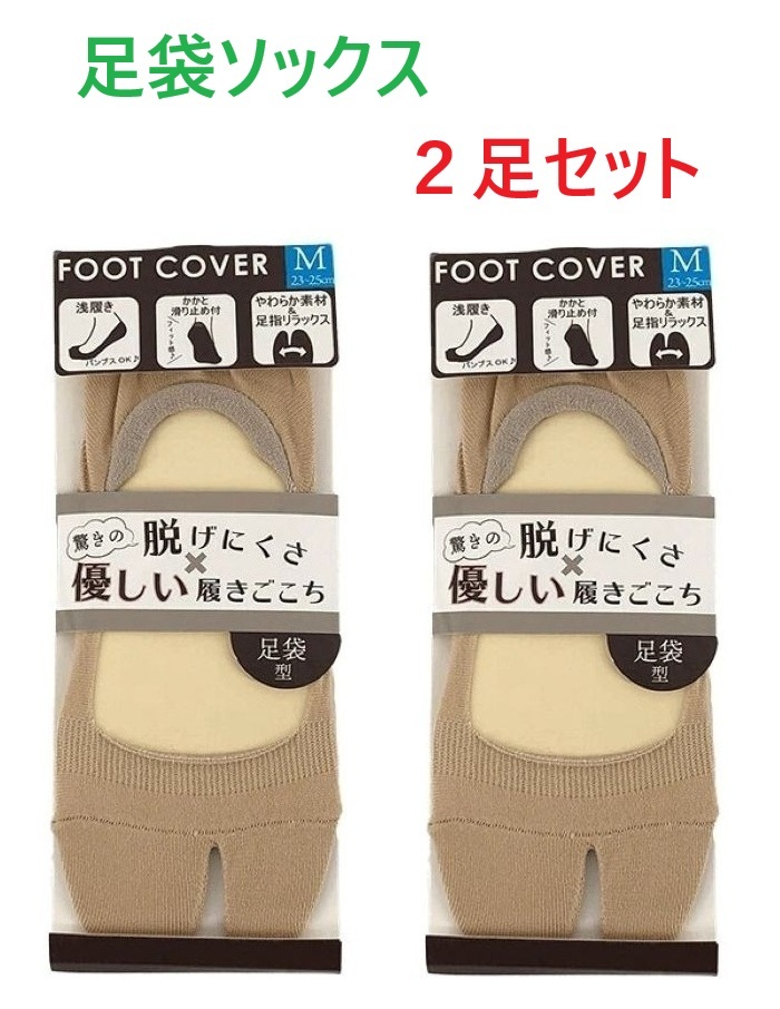 【2足セット】M・ベージュ 足袋型 フットカバー レディース 23~25cm 足袋ソックス 浅履き かかと滑り止め付き 新品 收藏
