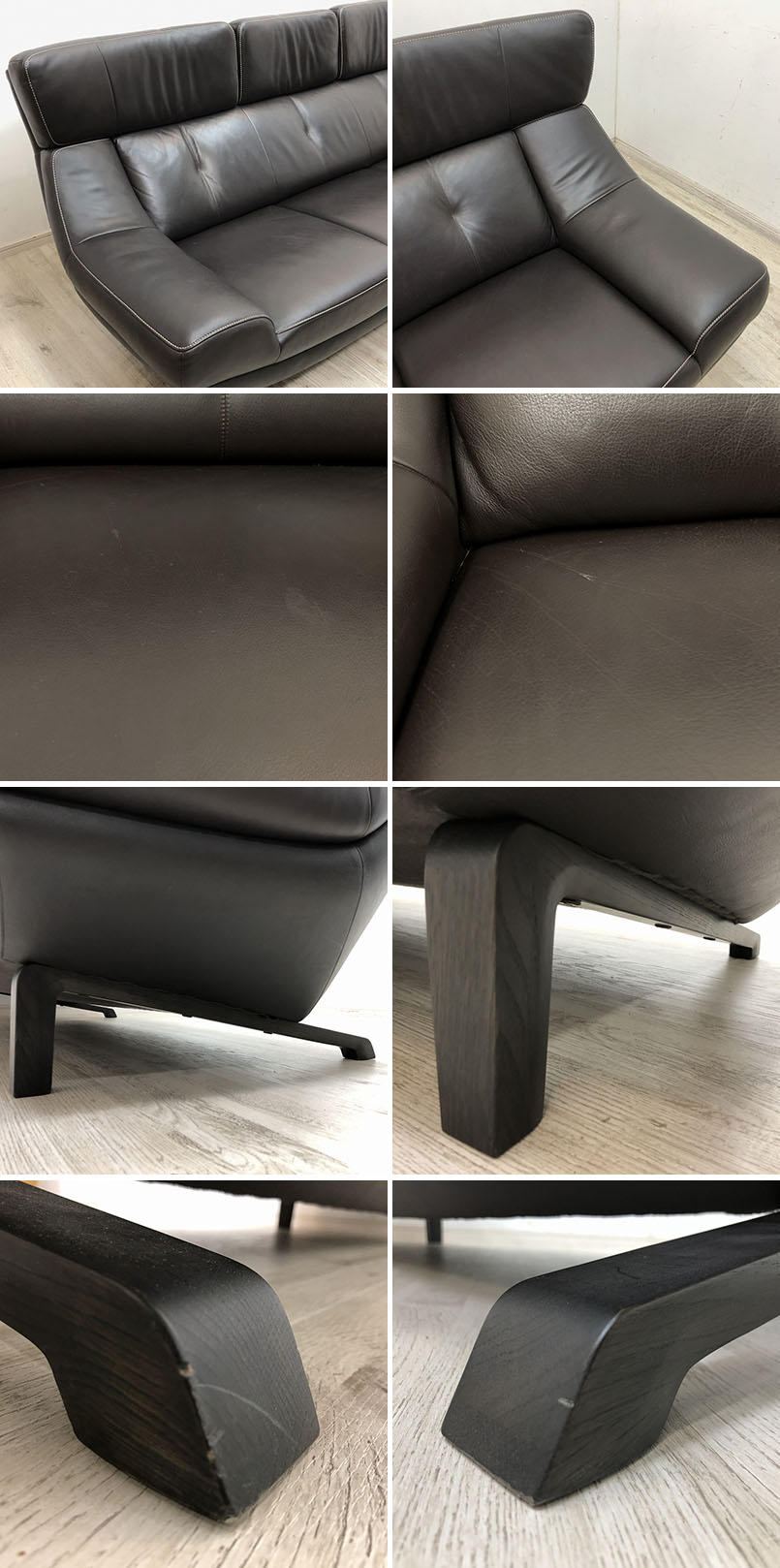 状態良好●karimoku カリモク家具 ZU46シリーズ 3人掛ソファ ZU4603 木部:シアーブラック色 本革:リーベル ビターブラウン色 名古屋 收藏