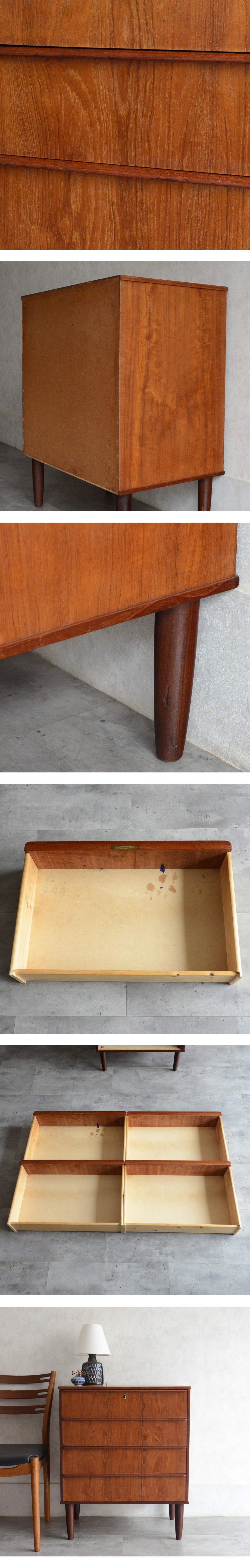 デンマーク 北欧ヴィンテージ チーク 4段チェスト 北欧家具 ミッドセンチュリー 洋タンス 北欧デザイン サイドチェスト メンテナンス済 收藏