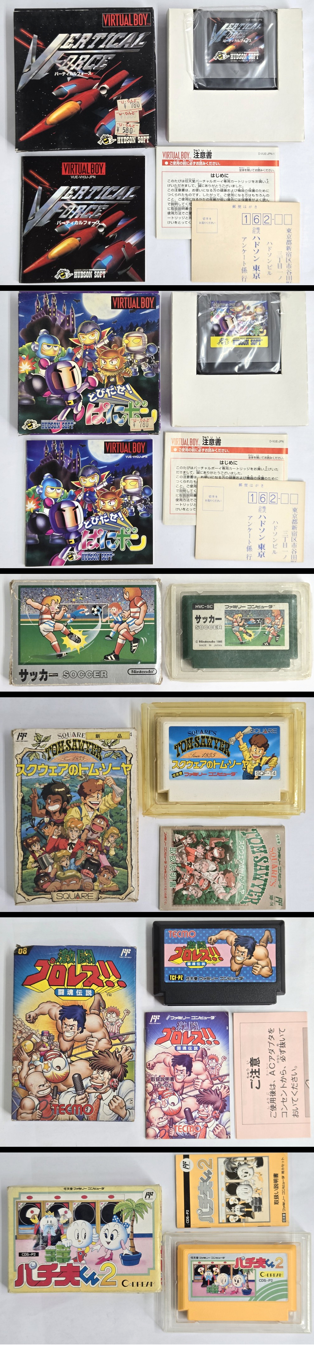 ▼商品名 | [まとめ売り 現状品] FC用カセット 箱付計20本 付属品写真あり バーチャルボーイ タイトー ナムコ テクモ スクウェア 任天堂 ハドソン |
