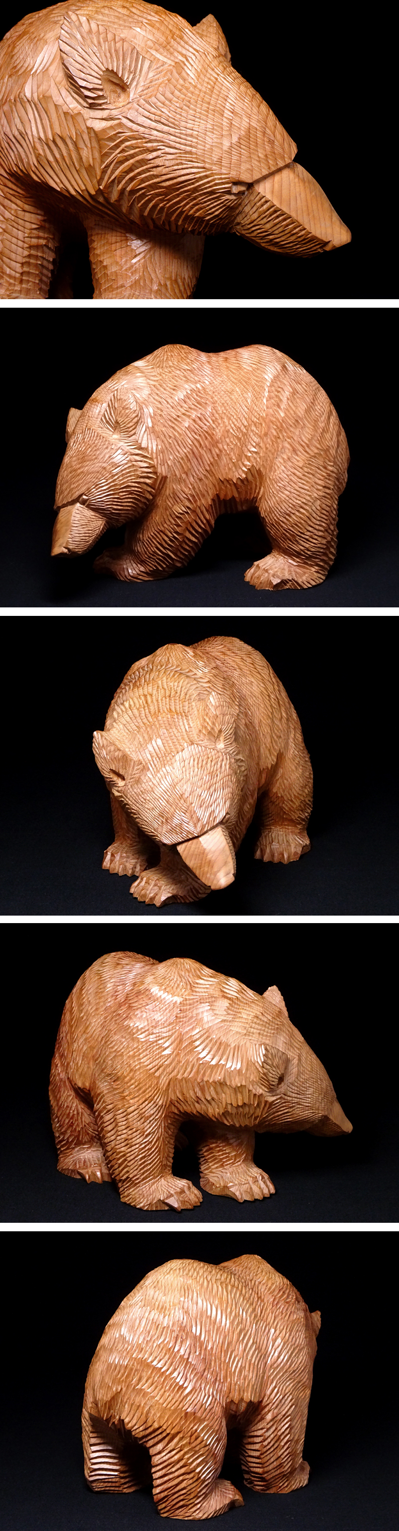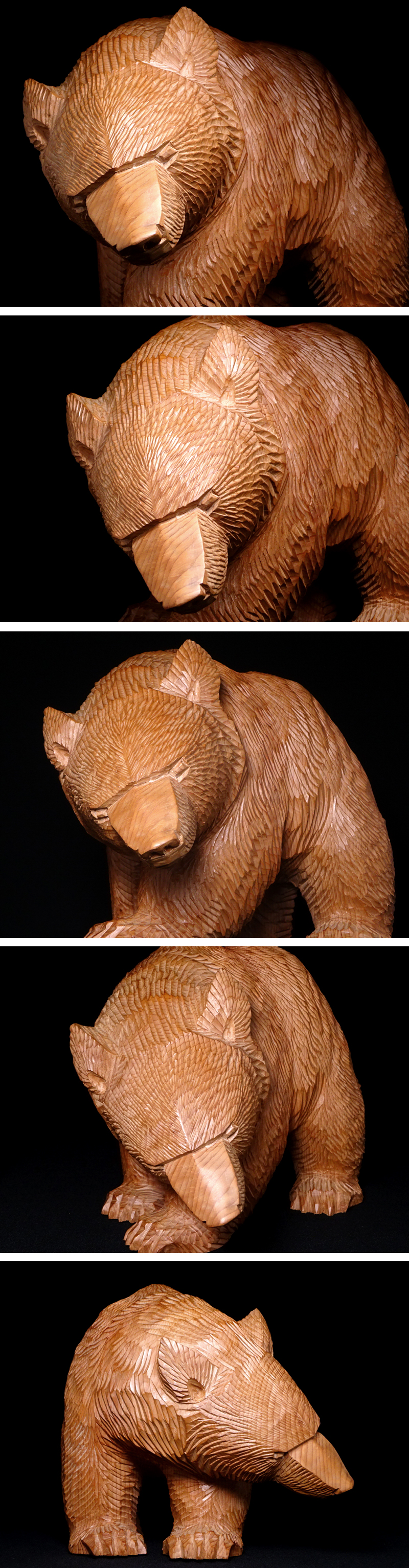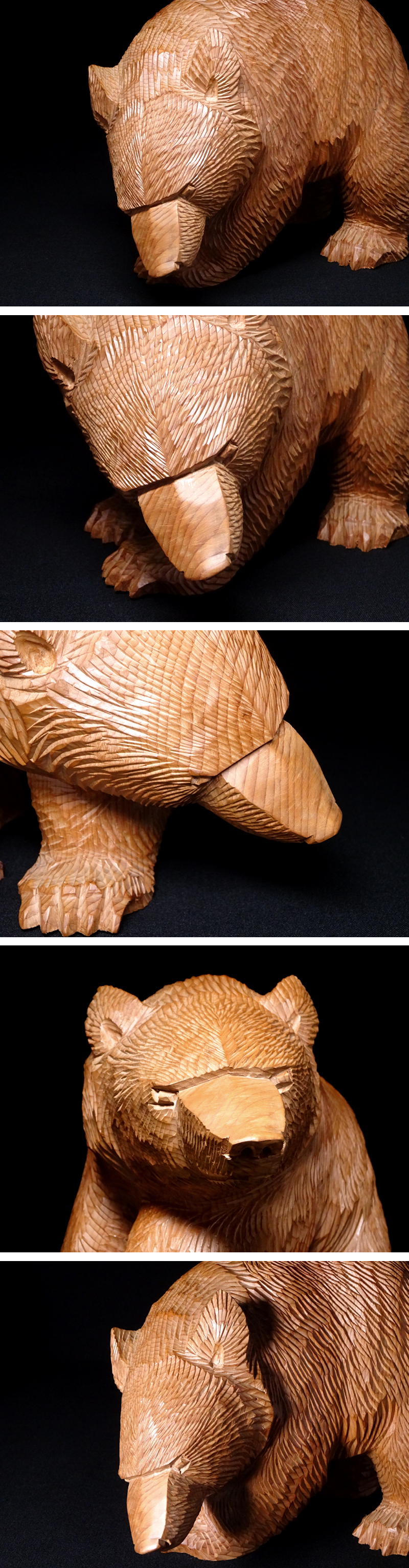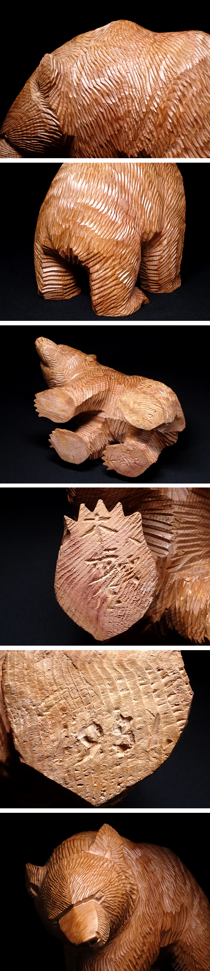 慶應◆八雲の熊彫作家【引間二郎(木歩)】1981年作 木彫 毛彫り 這い熊 置物 圧巻の写実彫刻!伝統民芸 師:柴崎重行、茂木多喜治 收藏