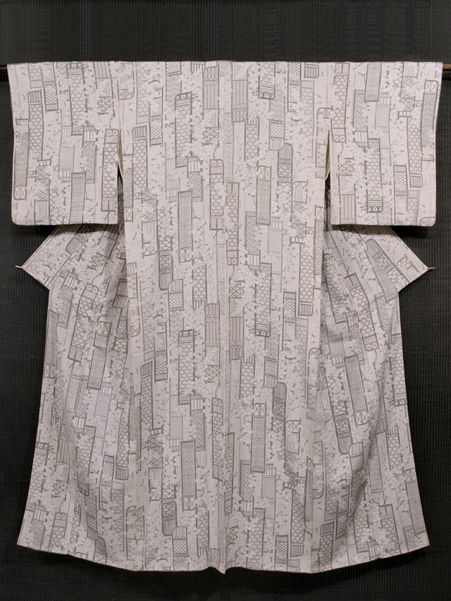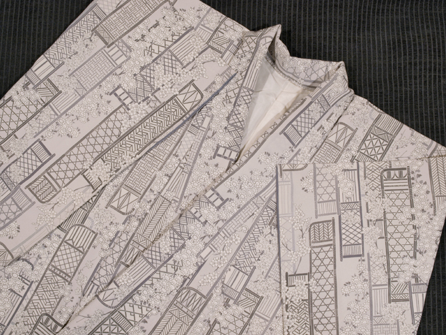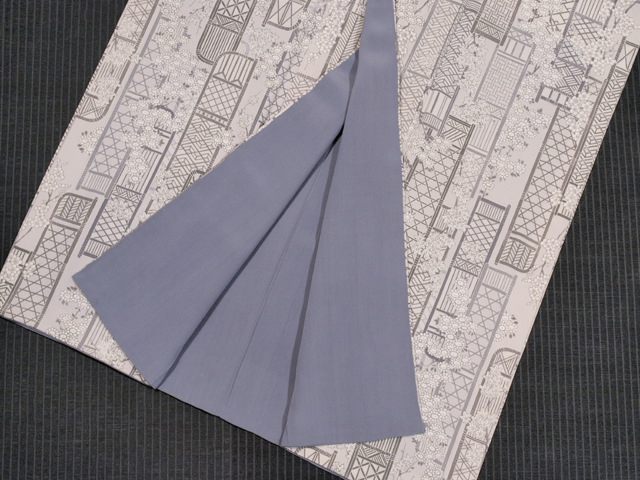 | 詳細 | 灰白色(かいはくしょく)の地に、垣と楓や菊、梅などの草花の文様が染められている縮緬の小紋です。袷仕立てです。 シックで帯が映えそうなお色目です。藤鼠(ふじねず)色の八掛も合っていますね。なめらかでやわらかな手ざわりのよい上質な縮緬地です。 ユーズド品で、胴裏に直径約 2mm の黄変が 1 か所あります。左衿山にごくうっすらとしたくすみが。ありますが、ほとんど判別はつかず、気にはなりません。そのほかにしみやよごれ、褪色などのダメージは見あたらず、きれいな状態です。 |