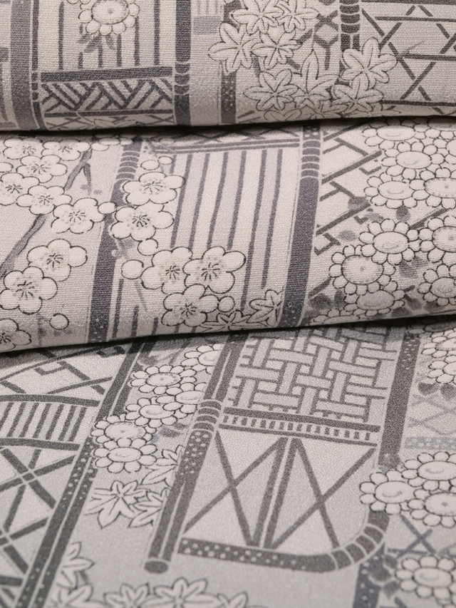 垣に草花文 縮緬 小紋 丈153 TADE01003風楽 |
