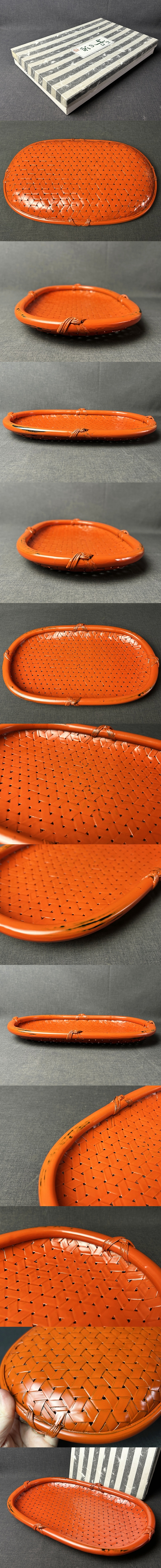 煎茶道具 竹の器 籠胎漆器 楕円盆 未使用 箱付◇茶盆/長手盆/茶器/茶事/茶会/懐石/菓子器/竹工芸/漆塗り/漆芸/うるし/民藝/伝統工芸 收藏