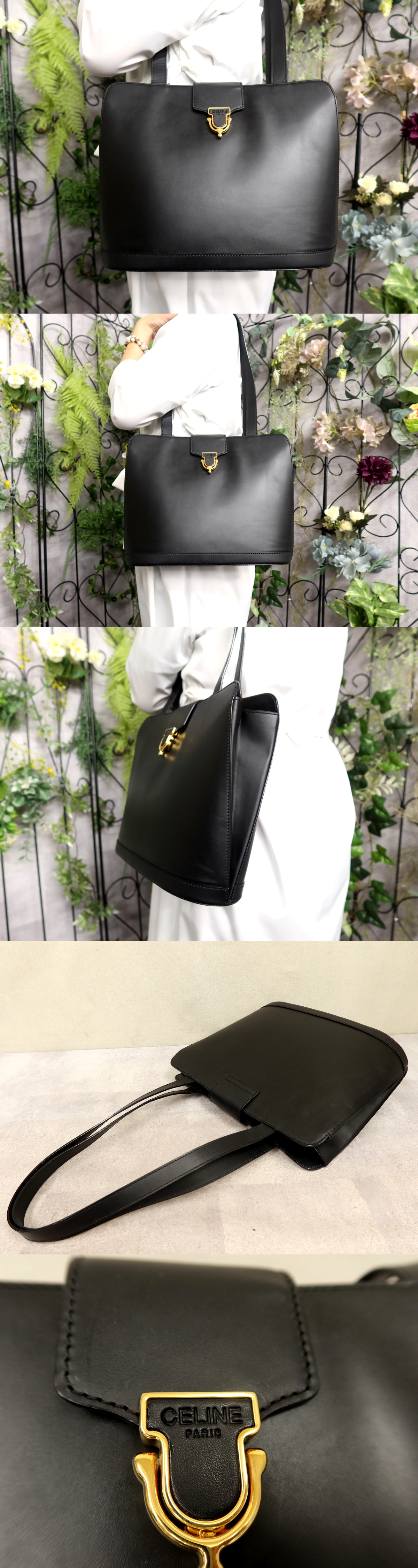 ●超美品●CELINE セリーヌ●カーフ レザー 本革●ショルダー バッグ●黒●ゴールド金具●肩掛け●ヴィンテージ●B5 収納 かばん●Js60862 收藏