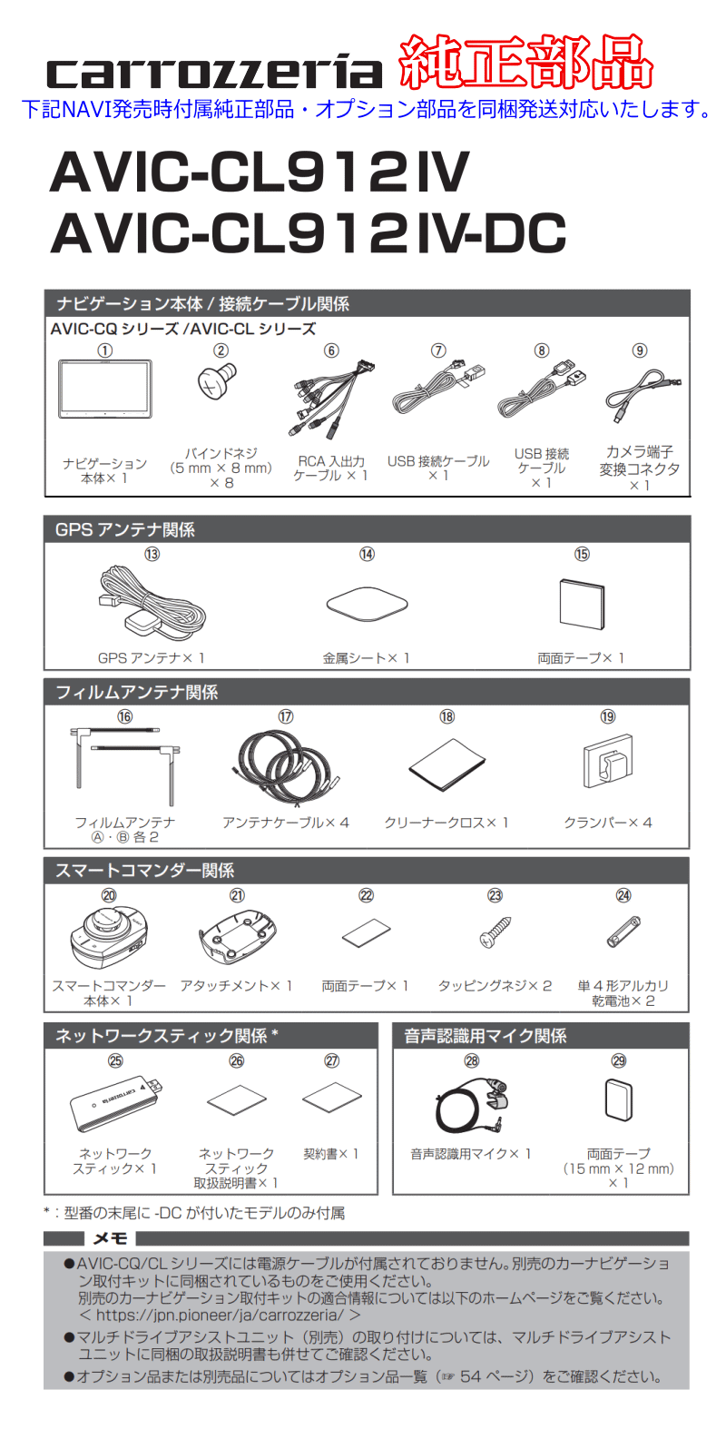 カロッツェリア carrozzria 純正品 AVIC-CL912IV AVIC-CL912IV-DC 純正部品 地デジTV フィルム アンテナ アンテナ コード Set (075 收藏
