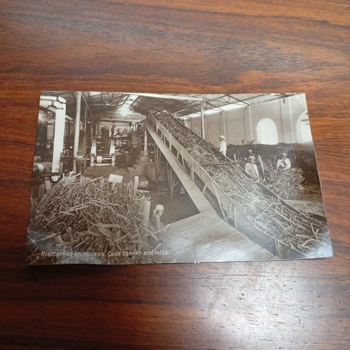 ネ503 古ポストカード 昔のインドネシア スラバヤ サトウキビ 粉砕機 製糖所 工場 8枚セット 昭和 レトロ 写真 絵葉書 收藏