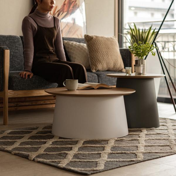 センターテーブル ナイトテーブル サイドテーブル グレー 直径69cm 丸形 軽量 PT-991GY AZ 收藏