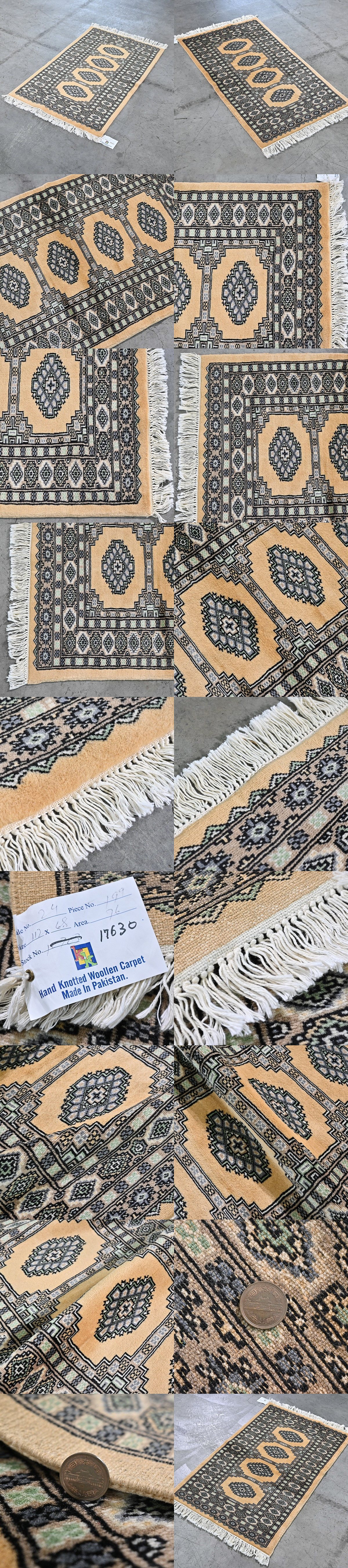 新品 未使用 パキスタン製 手織り ウール絨毯 ラグ ボハラ柄 ギュル文様 ハンドノット 羊毛 カーペット マット ホテル 応接室 P-94 收藏