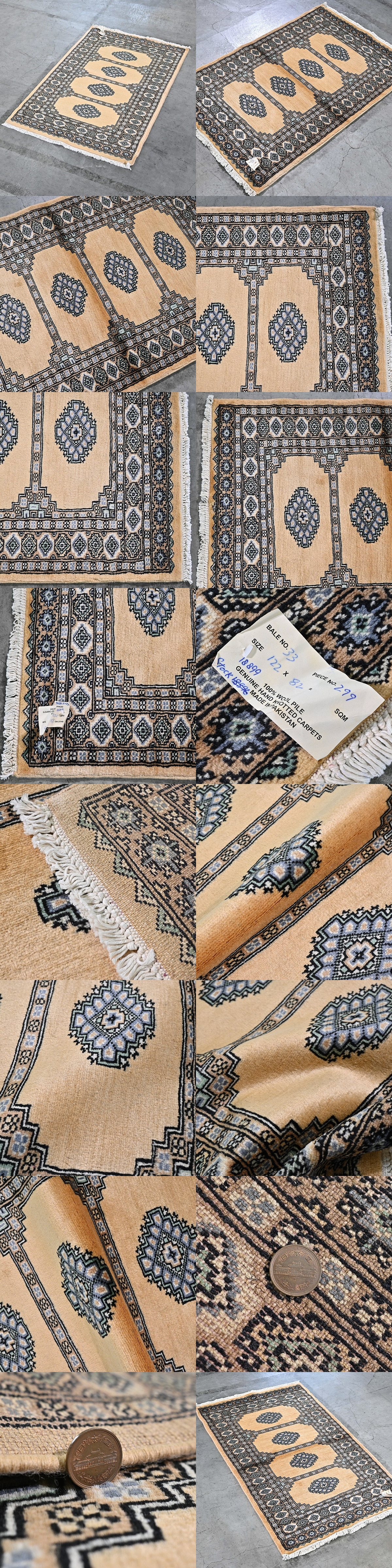 新品 未使用 パキスタン製 手織り ウール絨毯 ラグ ボハラ柄 ギュル文様 ハンドノット 羊毛 カーペット マット ホテル 応接室 P-101 收藏